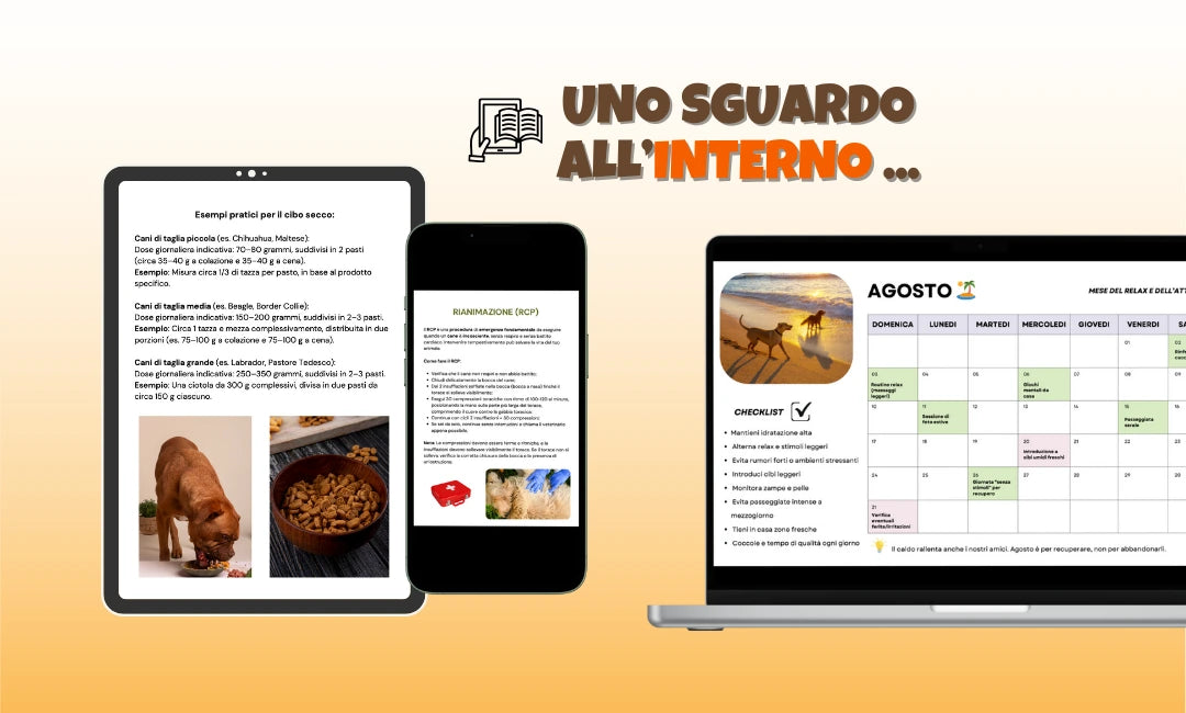 Con l'acquisto del Kit accedi gratuitamente al nostro Club Premium per 1 anno: ogni mese, riceverai via email una guida digitale esclusiva a tua scelta con consigli pratici, strategie e strumenti per prenderti cura del tuo cane in modo sempre più consapevole e personalizzato.